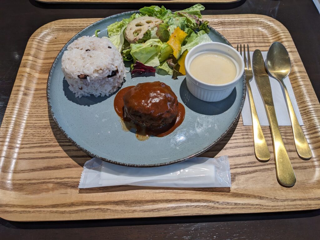 名物は炭バーグ!竹炭が練りこんであるハンバーグで、本当に真っ黒です!
